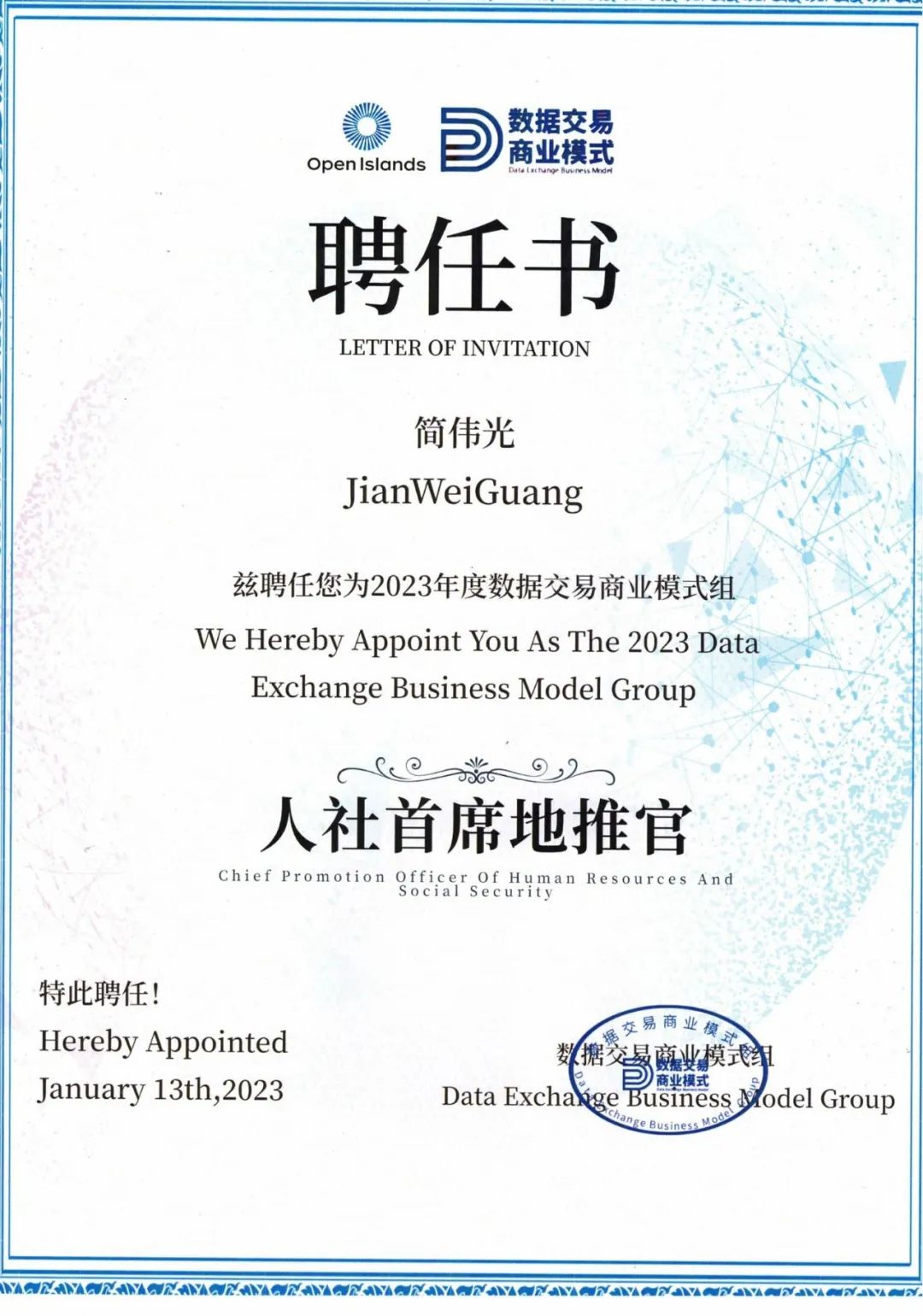 ▲bw必威西汉姆联官网大数据业务部总经理简伟光被聘为人社首席地推官,成为首批中国数据首席地推官之一