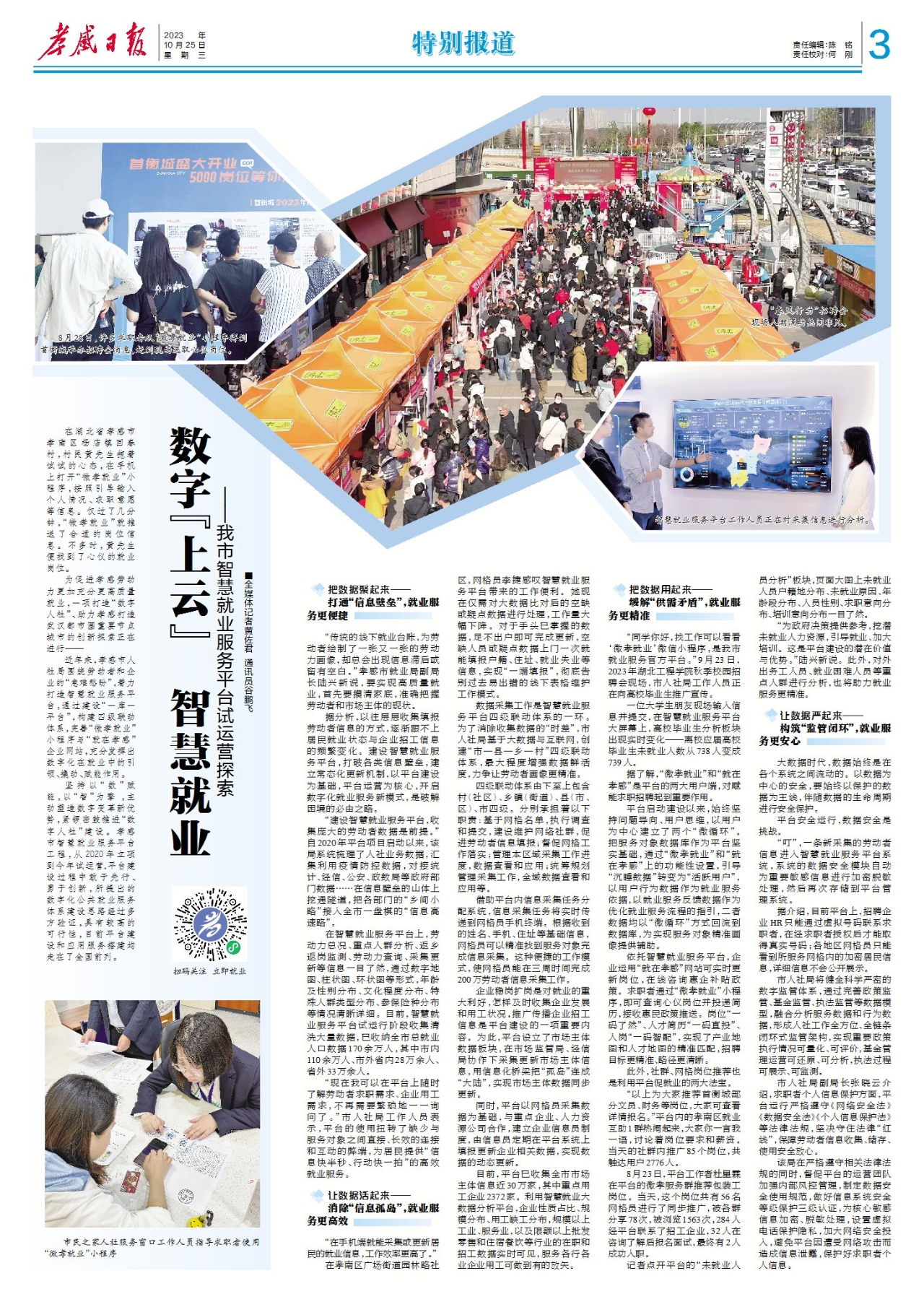 10月25日,孝感日报刊登了特别报道《数字“上云”智慧就业——我市智慧就业服务平台试运营探索》专题。文章报道了孝感人社积极探索数字化就业服务新路径,引进bw必威西汉姆联官网打造智慧就业“一库一平台”,完善互联网工具,以大数据为手段,助推孝感市公共就业服务体系走在全国前列。
