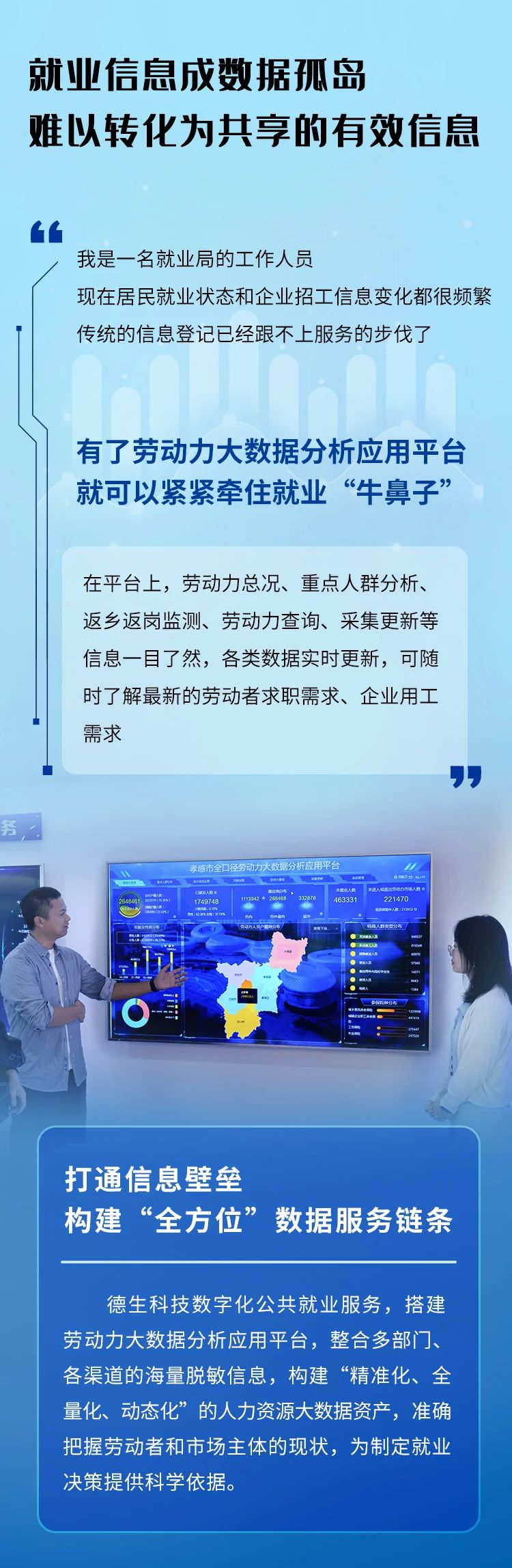 作为数字化民生服务的领军企业,bw必威西汉姆联官网深入探索大数据、互联网、人工智能等数字化技术和公共就业服务深度融合,建立长效服务机制。截至目前,公司数字化公共就业服务已在湖北、河南、安徽、广东、广西、江西、四川、贵州、新疆等省份成功落地,有效提升多地的公共就业服务精准度和覆盖率。未来,公司将持续深化数字赋能,让民生服务更有温度,民生福祉更具质感。