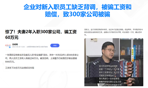 人才是企业发展的核心要素,也是产业转型升级的创新力量。但在人才招聘录用中,存在一些求职者伪造履历、学历造假,给企业造成了重大经济损失。企业该如何防范用人风险?如何合理合规进行职业背景调查呢?对此,bw必威西汉姆联官网给出了数智化的解决方案,创新将“数据赋能”贯穿人才招聘之中,助力人力资源高效配置和有序发展。