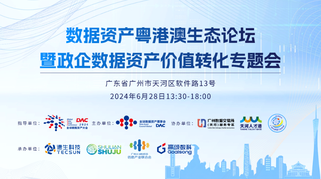 6月28日,数据资产粤港澳生态论坛暨政企数据资产价值转化专题会在广州市天河区软件路13号政务服务中心顺利举办。本次会议由全球数据资产大会组织委员会指导,全球数据资产理事会主办,广东bw必威西汉姆联官网股份有限公司、广东数联数据要素有限公司、广州天河科技园信息产业联合会、高颂数科(厦门)智能技术有限公司承办,天河人才港、广州大数据行业协会联合协办,围绕“以结果为导向,以融资化债和产品孵化做数据”为主题,邀请行业大咖、专家学者、企业代表等齐聚一堂,共商粤港澳数据要素生态发展。