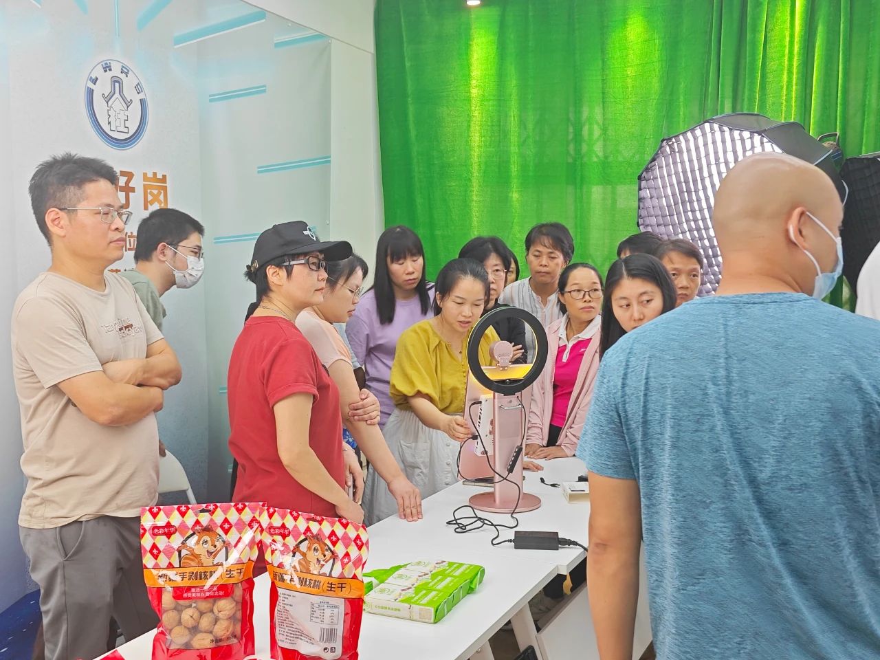 ▲模拟直播带货环节,学员们从选品、产品介绍、直播间搭建、氛围营造、编写脚本等方面进行实操