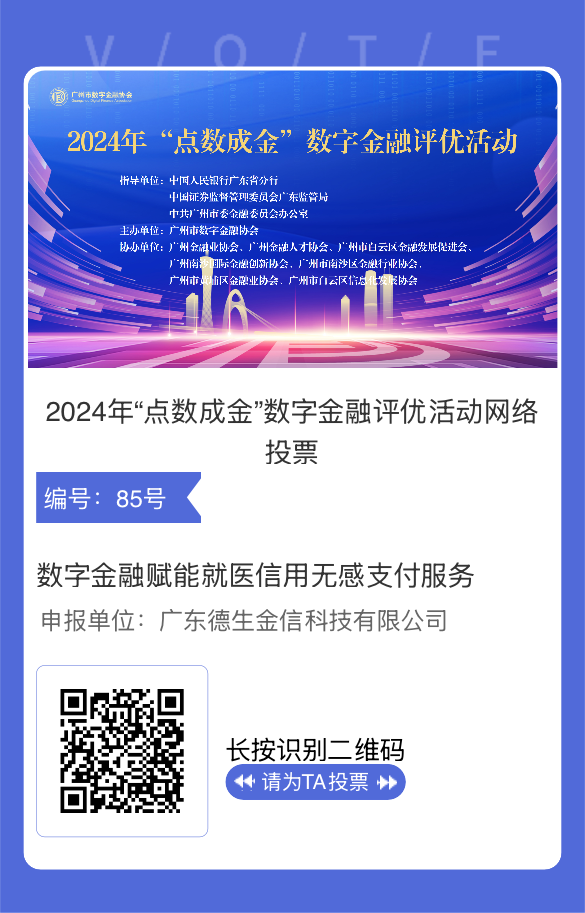 4月17日,由广州市数字金融协会主办的2024年“点数成金”数字金融评优活动网络投票正式启动,bw必威西汉姆联官网“就医信用无感支付服务”成功入选“数字金融优秀专项案例”提名,现诚邀您为这项便捷就医实践投下关键一票!