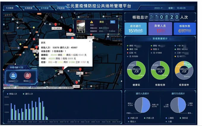 本次试点建设围绕白云区三元里村、松柏岗的主出入口门岗位置进行升级改造,实现状态可视、事件可控、业务可管,网格化立体联动防控,实时监管与流调追溯,做到“早发现、快反应”,降低区域大规模传播几率。截至10月底,三元里村绿码通行人次达130多万人次,有效拦截红黄码人员近1400人次。
