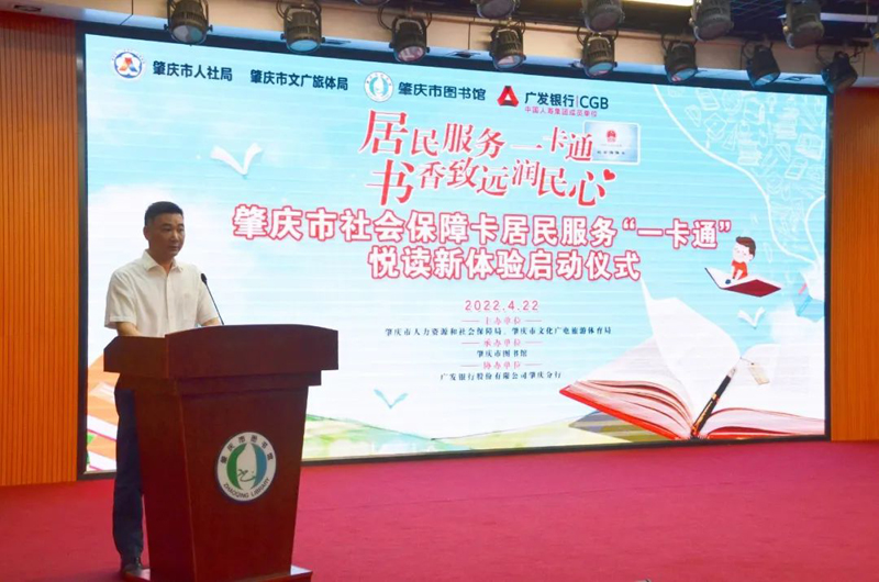 2022年4月22日,肇庆市社会保障卡居民服务“一卡通”悦读新体验启动仪式圆满举办,标志着肇庆市在文化体验方面率先实现“同城待遇”,加快构建居民服务“一卡通”新格局。