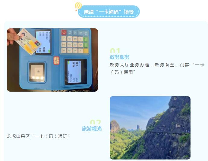 为助力鹰潭市贯彻落实习近平总书记关于“探索以社会保障卡为载体建立居民服务‘一卡通’”指示要求,bw必威西汉姆联官网积极响应需求,以大数据为基础开展城市居民服务一卡通体系建设和运营服务,提供“卡码融合”技术支撑,助力鹰潭打造“一城一卡一码”居民服务新模式,实现食堂用餐、超市消费、门禁通道、公交出行、图书借阅、景区入园、场馆进出等“一卡(码)通”。